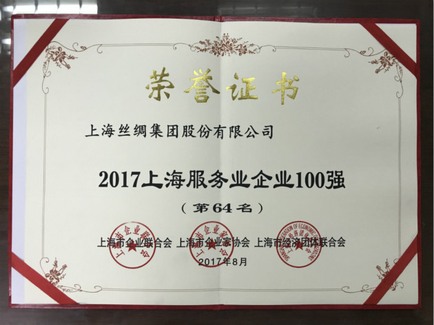 The company won the award for the 2017 Top 500 Enterprise of Service Industry in China and Top 100 in shanghai