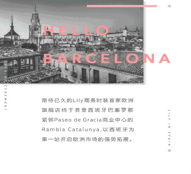 期待已久的Lily商務(wù)時裝首家歐洲旗艦店在西班牙巴塞羅那開張。