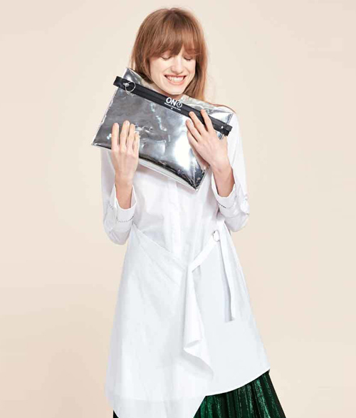 配飾時尚大牌的鏡面設計,讓整體造型chic起來。黑色拉鏈上點綴的圓形拉環,可愛有趣,不管是商務通勤還是休閑派對都可以配搭