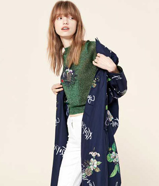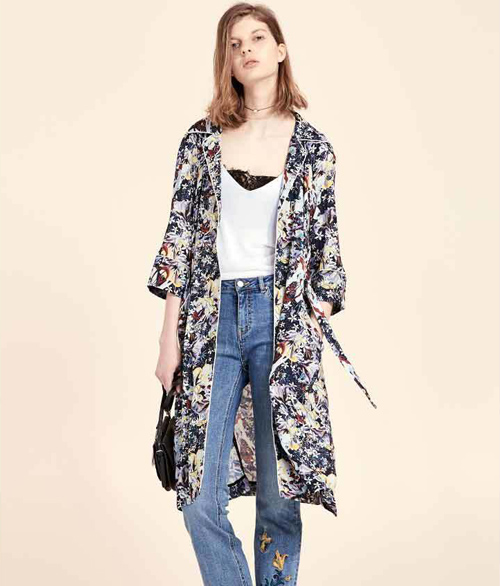 風衣H型輪廓的外套近期十分火熱,不僅非常有氣場而且有技巧的修飾了身材。大面積印花圖案的設計,更顯時髦優雅