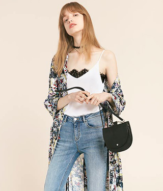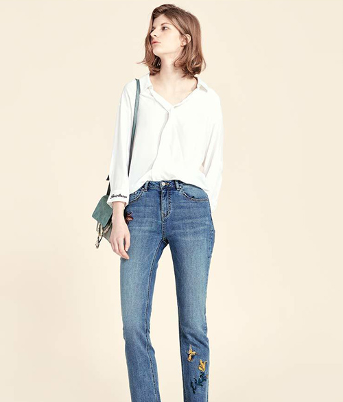 褲子修身版型搭配磨白破洞設計,內斂又不羈,腳口不對稱及毛邊處理,更顯休閑時髦,隨意搭配哪種上衣都變身時尚ICON